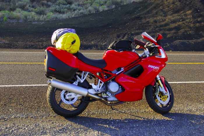 on a sport bike and the the heavily loaded panniers reminded him that