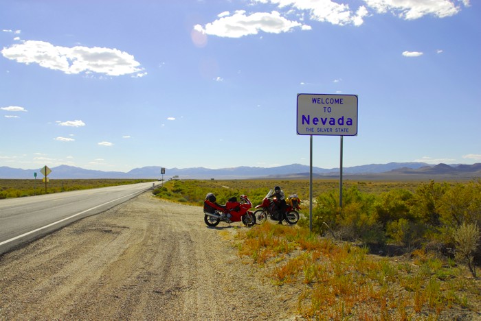 At the Nevada border we took pictures at the "welcome to" signs for