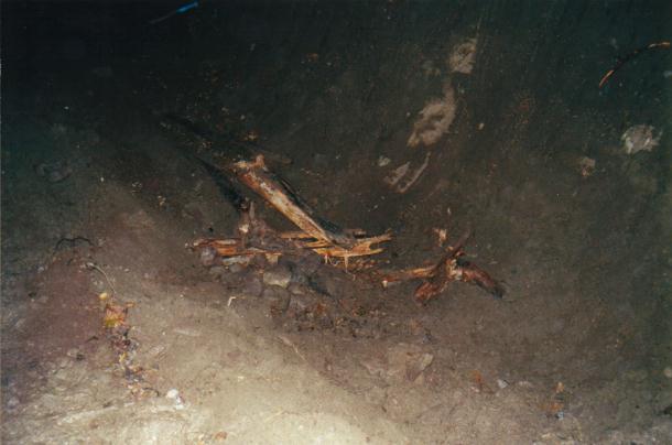 While backing down a very muddy hill that we couldn't make, we slid into this ditch. Unfortunately, we don't have a picture of the Bus IN this ditch on a cold, wet October day. You really can't see much, but