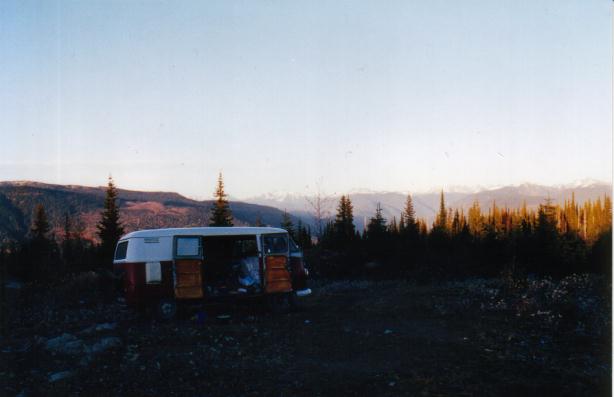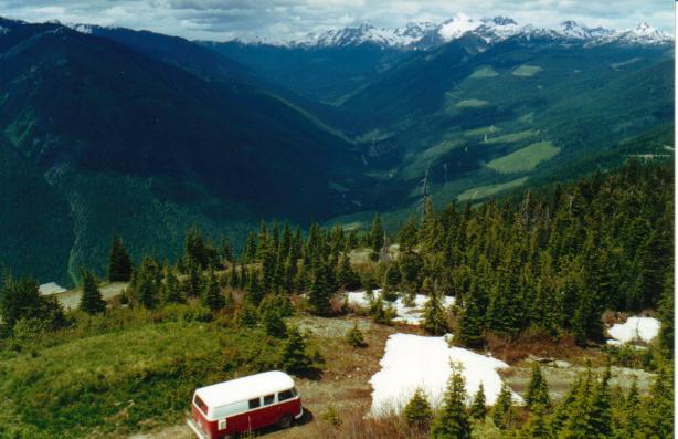 This is a view of our bus & a beautiful valley from a fire lookout near Kaslo B.C. (Our bus is the only one wheel drive vehicle we've seen