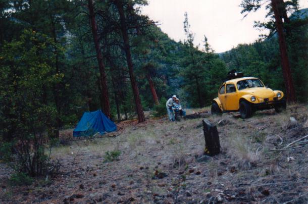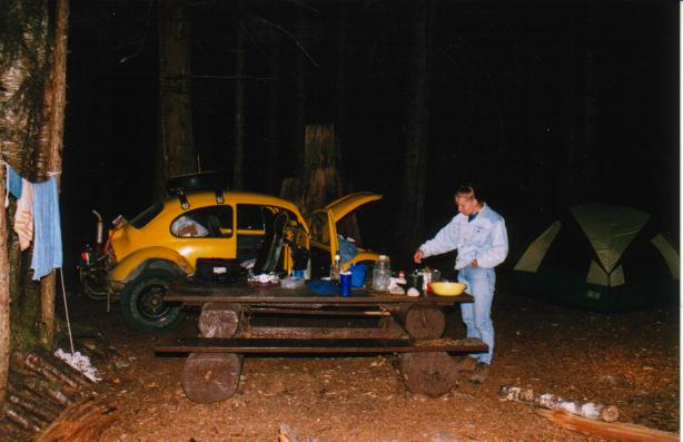 In 1999, the Baja got "grumpy" (we didn't know what was wrong, but something told us not to drive him on the highway anymore), so that summer we took Giggles camping. We seem to have this thing about